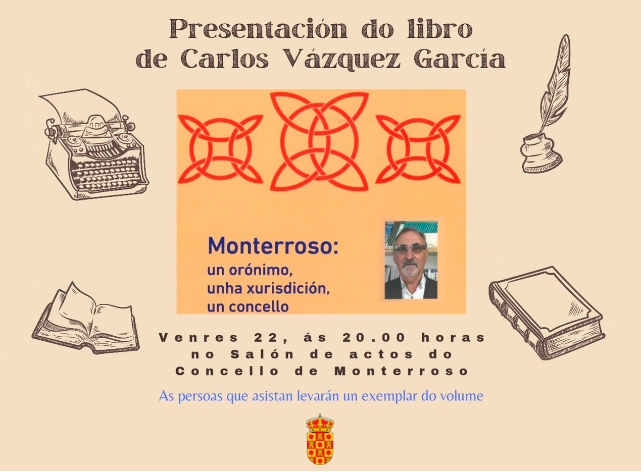 O acto terá lugar no salón de actos do Concello De Monterroso o día 22 ás 20:00 horas.