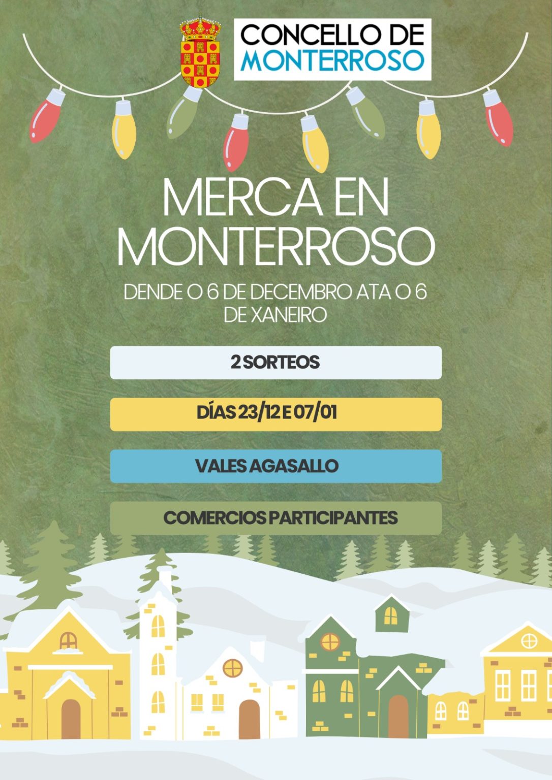 O Concello de Monterroso, en colaboración cun grupo de empresarios da vila, convoca e participa na organización dunha Campaña de Nadal entre os días 6 de decembro e 6 de xaneiro co obxectivo de incentivar e potenciar o consumo na vila.